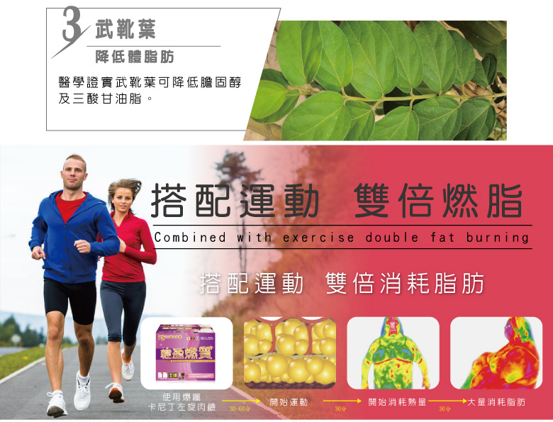 成 分:大豆蛋白萃取物(含苯丙胺酸、纈胺酸、蘇胺酸、色胺酸、異亮胺酸、亮胺酸、甲硫胺酸、精胺酸、離胺酸、組胺酸)、L-肉酸、武靴葉、紅花籽萃取(含CLA共軛亞麻油酸)、麥芽糊精