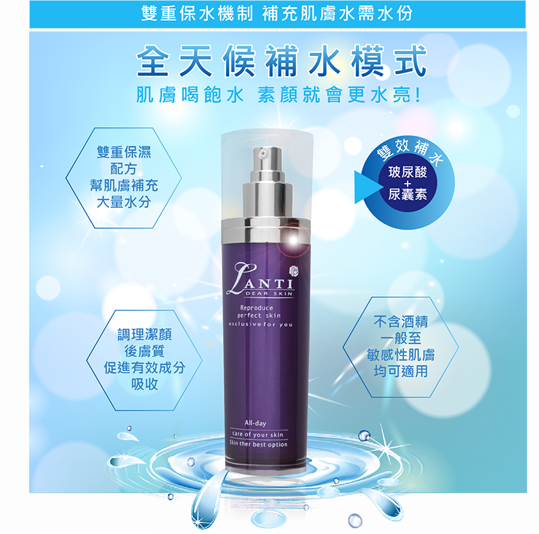 ◆商品名稱:  Lanti極緻水潤玻尿酸保濕化妝水