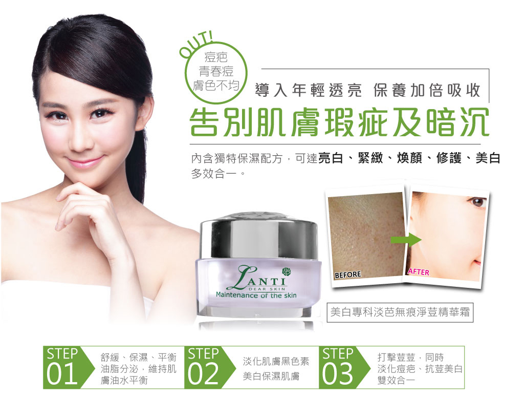 ◆商品名稱: Lanti美白專科淡芭無痕淨荳精華霜